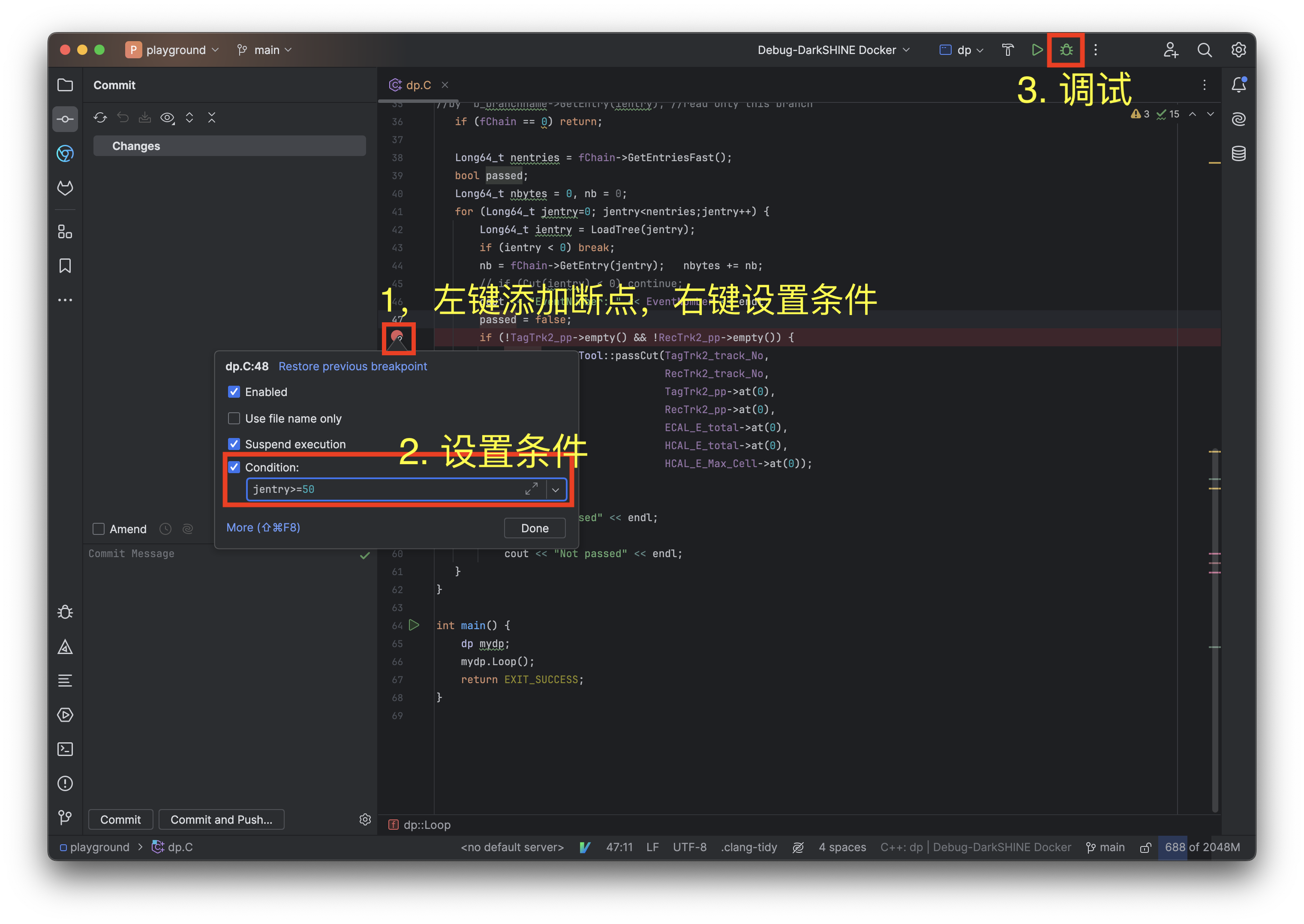 断点是暂停程序执行的标记。断点用于检查程序的状态。可以直接在代码中添加断电,或设置复杂的触发逻辑(例如条件判断、log消息)。