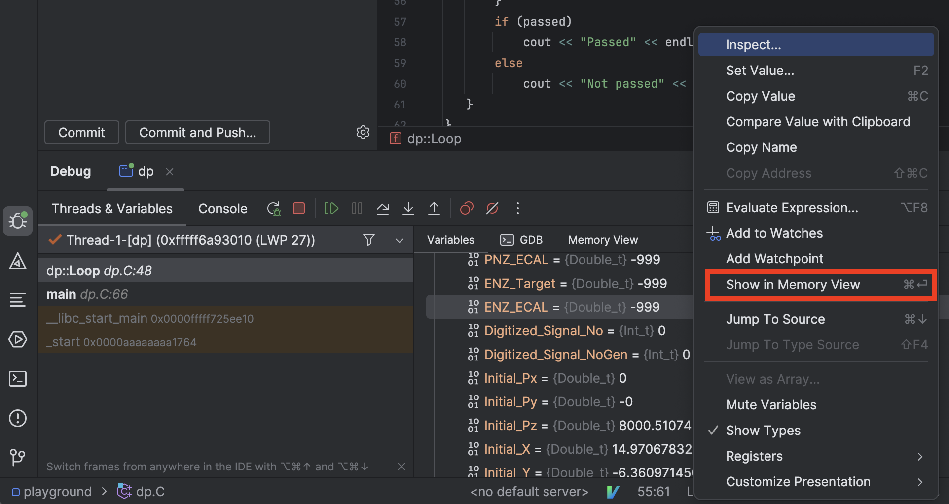 在某些情况下,例如在调试数据处理问题时,我们可能需要查看正在运行的进程的原始内存。可以从Variable选项卡中的指针跳转到包含所需地址的内存区域,并在单步执行程序的同时检查更改。