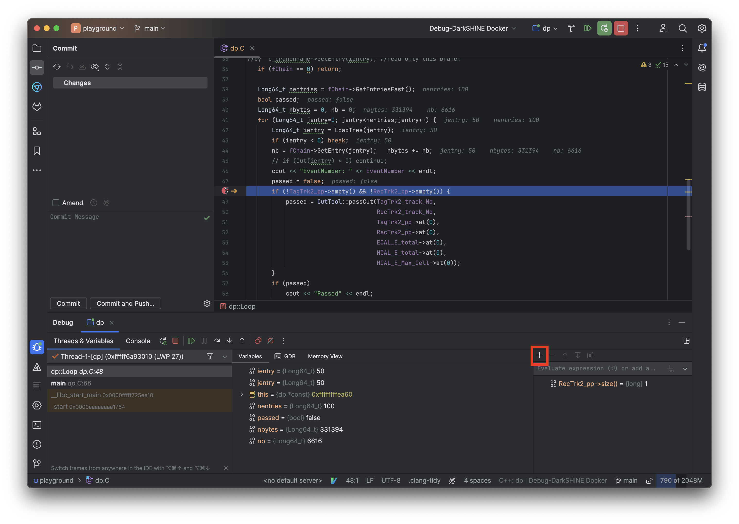 开始debug后可以计算复杂的表达式。