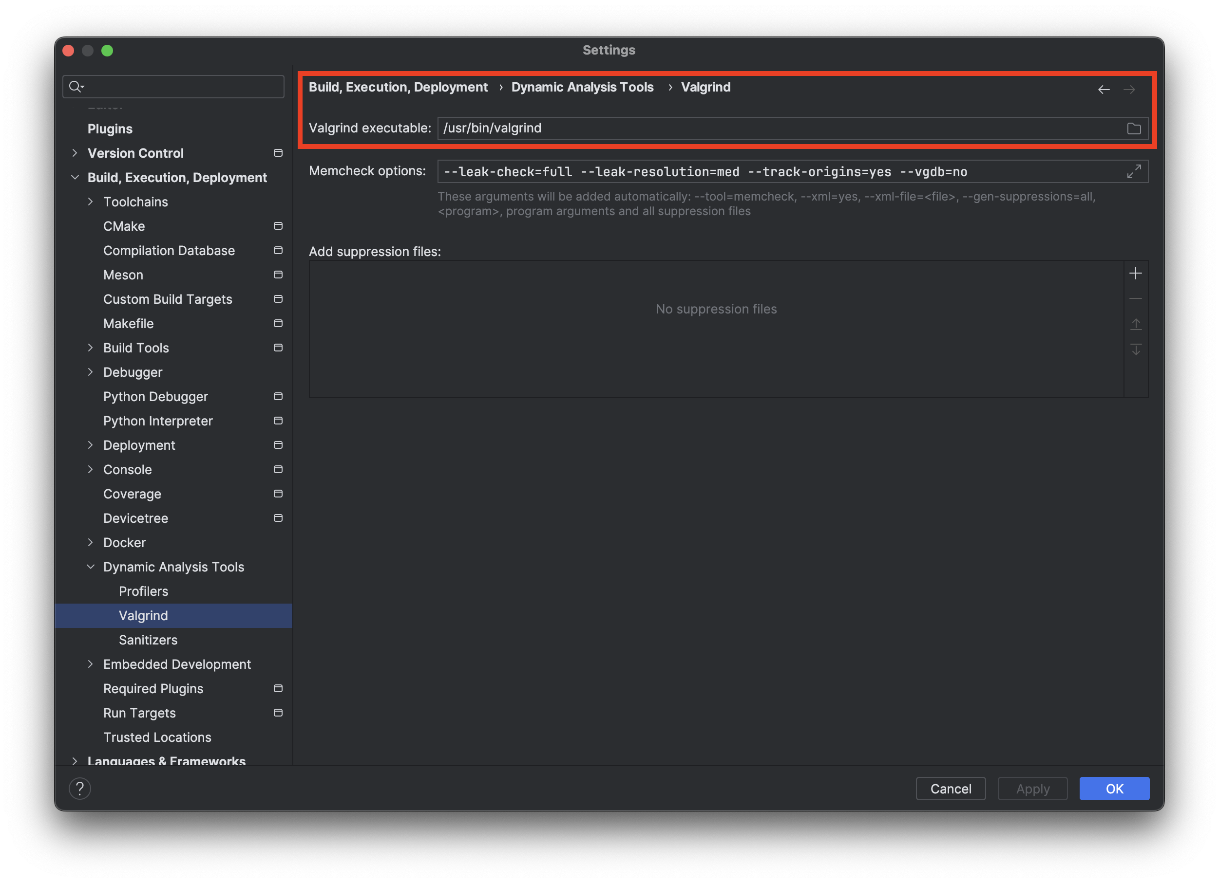 Valgrind executable: /usr/bin/valgrind