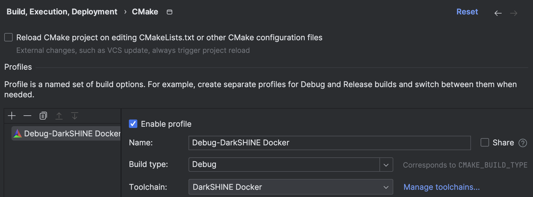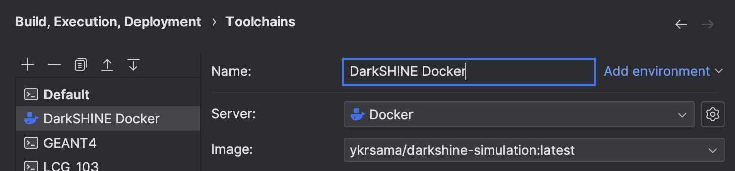 设置Toolchain为DarkSHINE Docker